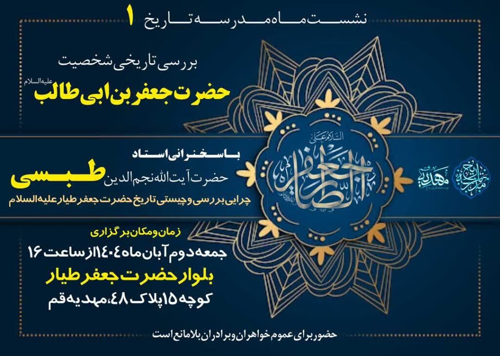 اولین نشست ماهانه مدرسه تاریخ با عنوان بررسی تاریخی شخصیت حضرت جعفر بن ابی طالب علیهماالسلام